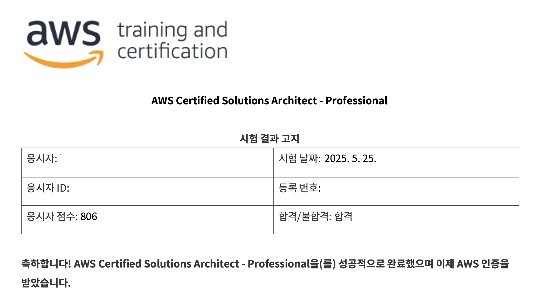 #자격증 #Dump #Solution Architect Professional Dump #자격증후기 #직장인자격증 다시 돌아온 자격증 취득 후기! 전 글에서 언급했듯이 2025년 목표가 자격증 5개 취득하기 였는데 이번 자격증까지 포함하여 4개의 자격증을 취득하였다 뿌듯 v^-^v 내가 이렇게 자격증을 딸 수 있었던 것은 다 2주 벼락치기 덕 아니었을까... 벼락치기만 잘해도 짧고 굵게 이력서에 적힐 만한 자격증을 취득할 수 있다. 1. 자격증에 대하여이번에 내가 취득한 자격증은 AWS certified Solution Architect Professional (SAP-C02)자격증으로 백엔드 개발자 / 아키텍처/ 프리세일즈 직군에게 적합한 자격증이다. Professional 자격증 답게, AWS..