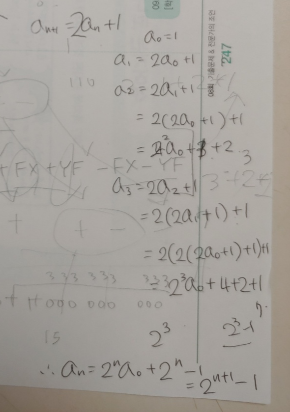 즉 an+1 = 2* an +1이라는 점화식이 나오고 이걸 풀면